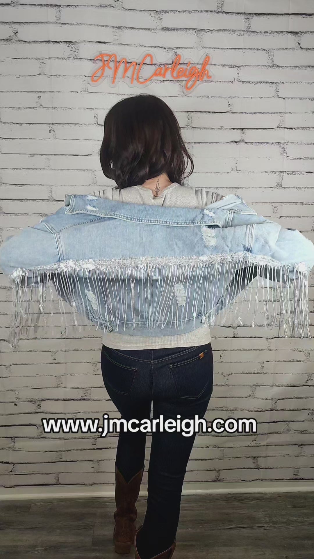 Steal the spotlight in our Rhinestone Rodeo Jacket! This denim showstopper features sparkling sequin fringe that shimmers with every move. Perfect for concerts, rodeos, or nights out, it’s that bold mix of cowgirl charm and glam attitude that turns heads everywhere you go. Pair it with boots and confidence — you’re the main act, babe.